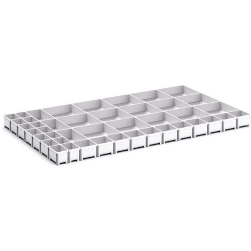 | Varenavn | Opbevaringskasser til skuffe Cubio EKK0675, 43 rum – Bott, Bredde: 1050 mm, Dybde: 650 mm, Højde: 75 mm |