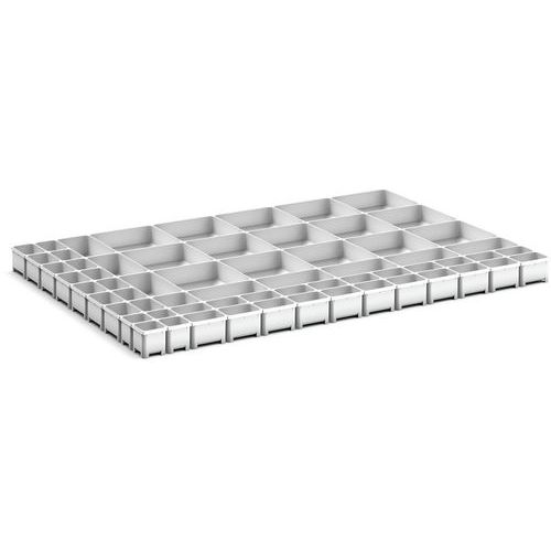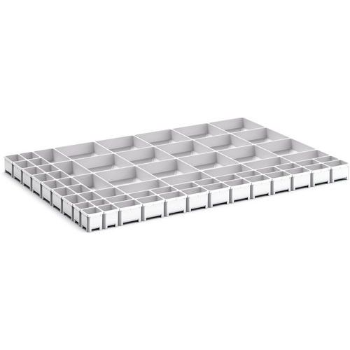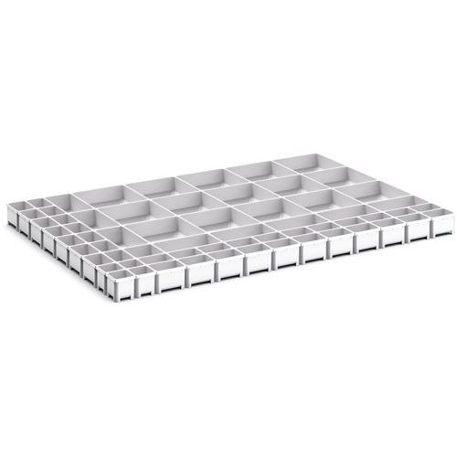 | Varenavn | Opbevaringskasser til skuffe Cubio EKK0775, 64 rum – Bott, Bredde: 1050 mm, Dybde: 750 mm, Højde: 75 mm |