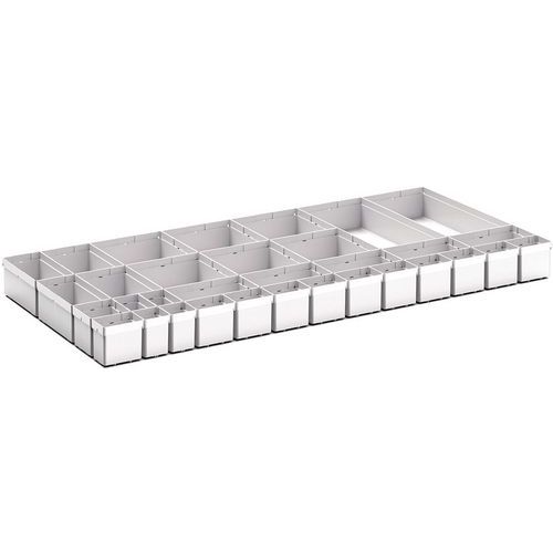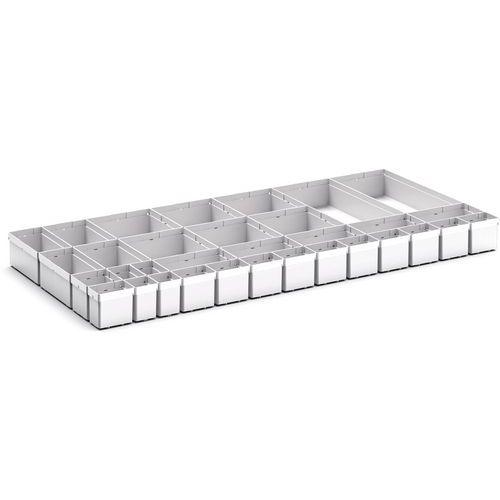 | Varenavn | Opbevaringskasser til Verso skuffe, 33 rum – Bott, Bredde: 1050 mm, Dybde: 550 mm, Højde: 100 mm |