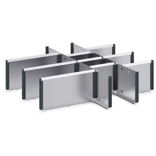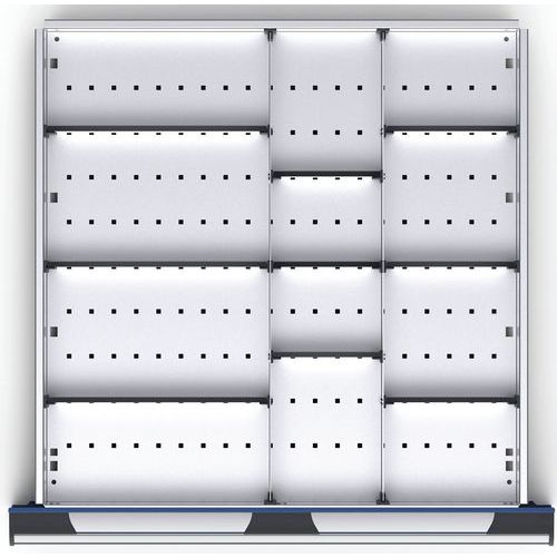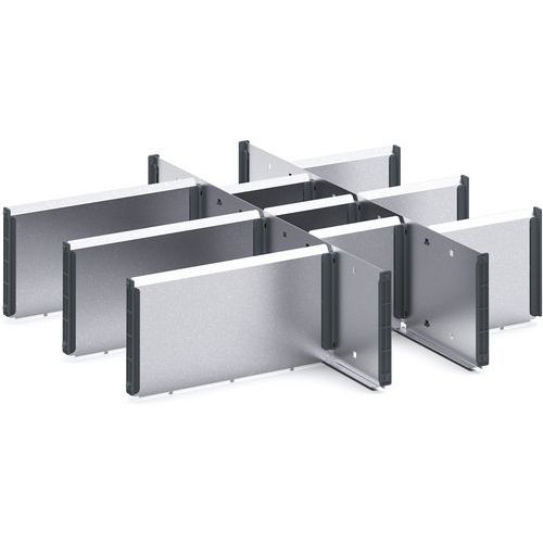 Opdelersæt til skuffeskab Bott SL-66 – Højde 12,7 cm, Type af sektionsinddeling: 2 skillevægge, 9 faner