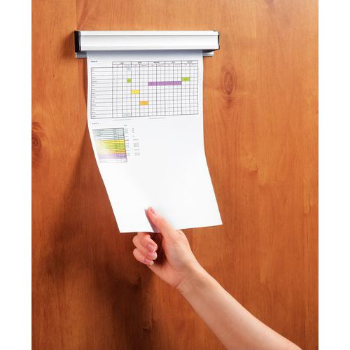 Aluminiumsprofil med plastruller som papirklemme. På overdelen er Alu udformet til placering af penne. I udhulningen på forsiden kan man ved hjælp af f.eks. en etiket nemt anbringe tekst eller en farverende. Det er nemt at koble flere klemmer sammen med hinanden. Montering med skruer eller dobbelt klæbende tape.