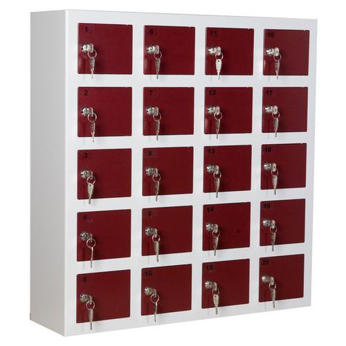 | Varenavn | Opladningsskab til mobiltelefoner, 20 fag, Materiale: Stål, Antal rum/søjle: 20, Bredde: 750 mm |