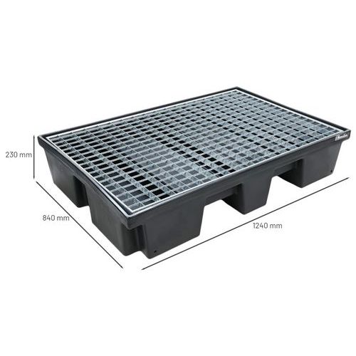 - Opbevaring af små tromler eller to 220 L tromler i lodret position.