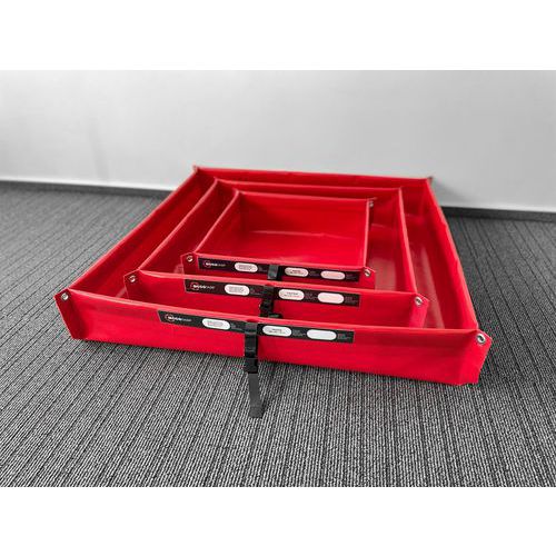 Opsamlingskarret er fremstillet af belagt PES/PVC-væv med høj kemikalieresistens, egnet til opsamling af forskellige farlige væsker som syrer, baser og petroleumsprodukter.