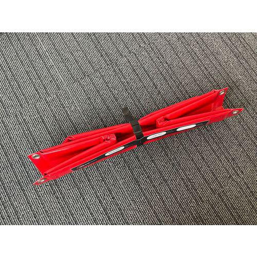 Under transport holdes karret sammenfoldet med en rem med plastkarabinhage, som let fjernes ved brug.