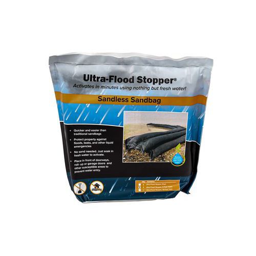 Oversvømmelsesbeskyttelse Ultra-Flood Stopper – sandløse sandsække som beskytter ejendom mod oversvømmelser, lækager og andre væskerelaterede nødsituationer.
