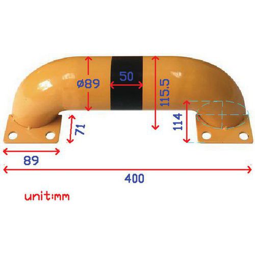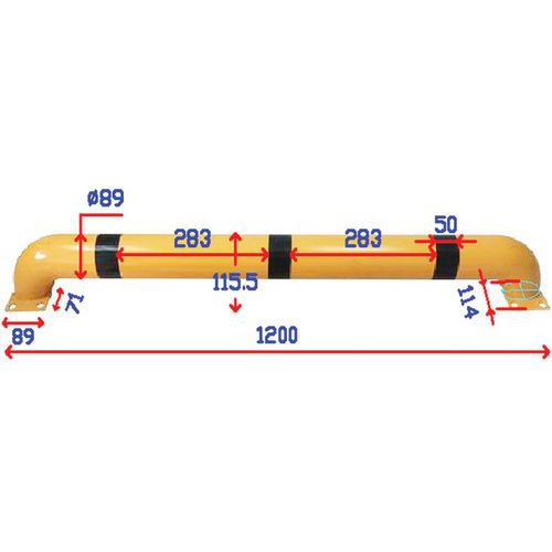 - Forebygger kollisioner. Enderne er affaset 45°. Forankring i underlaget med 2 forborede plader. Indeholder: 4 monteringsskruer