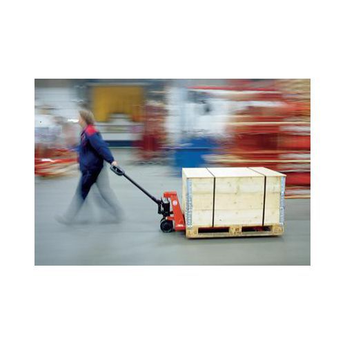Universaltrucken til manuel pallehåndtering i alle tænkelige arbejdsmiljøer - af højeste kvalitet og nem at vedligeholde. Den stærke, men samtidig lette konstruktion med svejsede samlinger og forstærkede gaffelspidser giver maksimal levetid, selv i de hårdeste miljøer. Over 10 smørenipler på alle bevægelige dele sikrer lang levetid. Klatterhjul i spidsen letter ind- og udkørsel i paller. Med dobbelt kuglelejer får du en letstyrende vogn, og gaffelmarkeringen sikrer korrekt position ved langsideshåndtering. Risikoen for klemskader er minimal, da håndtaget er formet til at passe den menneskelige hånd.