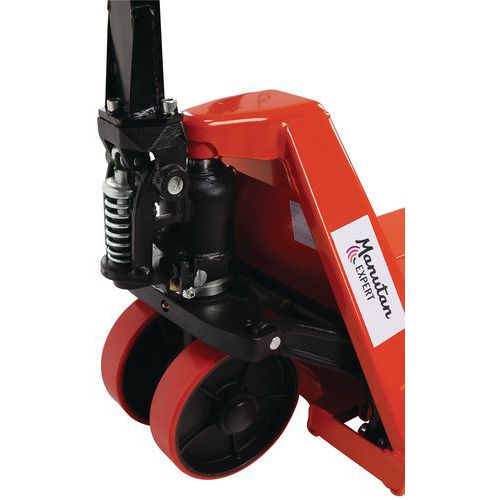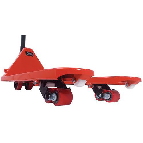 | Varenavn | Palleløfter, 2500 kg, 1150 mm, bogie, polyurethan, Kapacitet: 2500 kg, Gaffel, længde: 1150 mm |