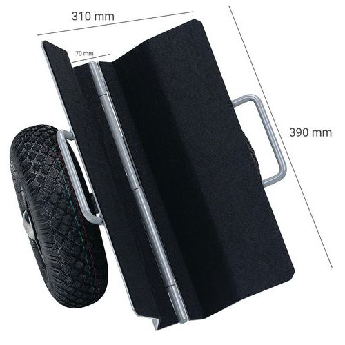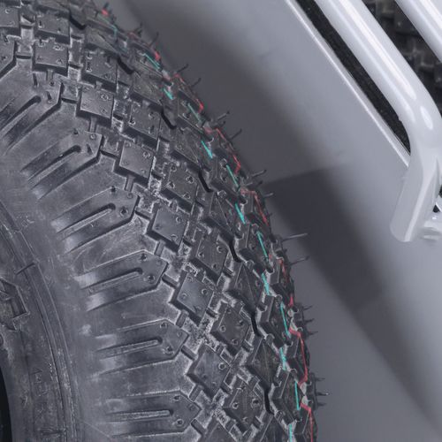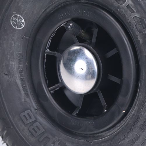 - Udstyret med luftgummihjul, der sikrer en jævn og stabil kørsel selv på ujævne underlag.