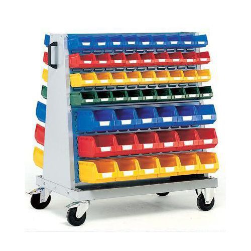 Med disse vogne med ophængningspaneler kan komponenter let transporteres rundt på arbejdspladsen. Panelerne kan placeres i to positioner: lodret eller let hældende.