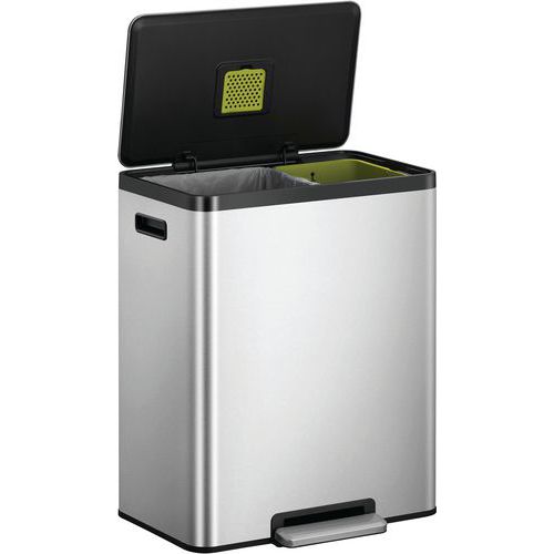 | Varenavn | Papirkurv Ecocasa II 36+24 L, ØKO, Volumen: 60 L, Materiale: Rustfrit stål, Farve: Sølv/zink, Højde: 66 cm |