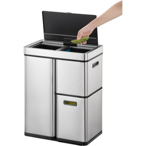 Papirkurv Elegant Mirage Plus Sensor Recykler 30+15+15 L, ECO, Volumen: 60 L, Materiale: Rustfrit stål, Låg
