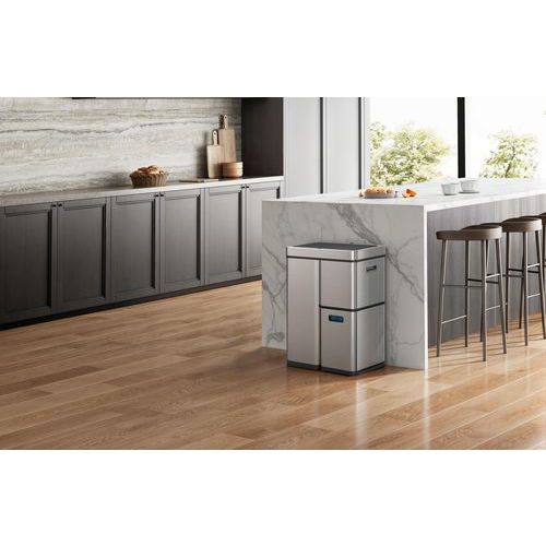 Elegant affaldsspand til affaldssortering af børstet rustfrit stål med anti-fingeraftryksfinish.