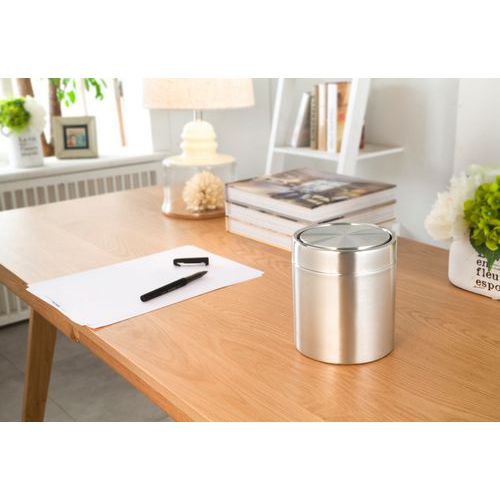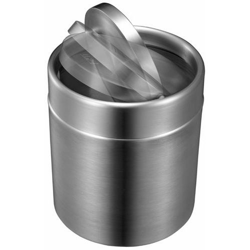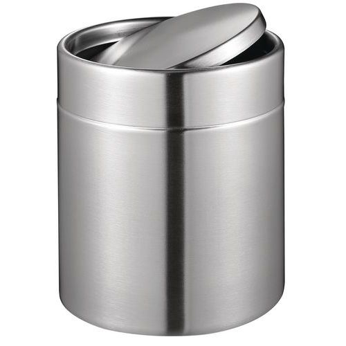 Et smukt design til denne lille bordplade affaldsspand lavet af mat rustfrit stål.