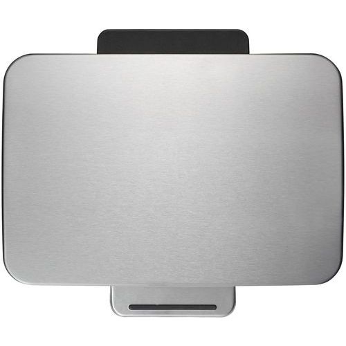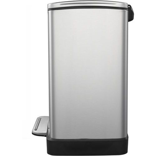 Stilfuld rektangulær pedalspand med ekstra bred pedal, indvendig plastikspand og fugtet låg.