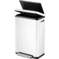 Stilfuld rektangulær pedalspand med ekstra bred pedal, indvendig plastikspand, blødt lukkende låg og stay-open funktion.
