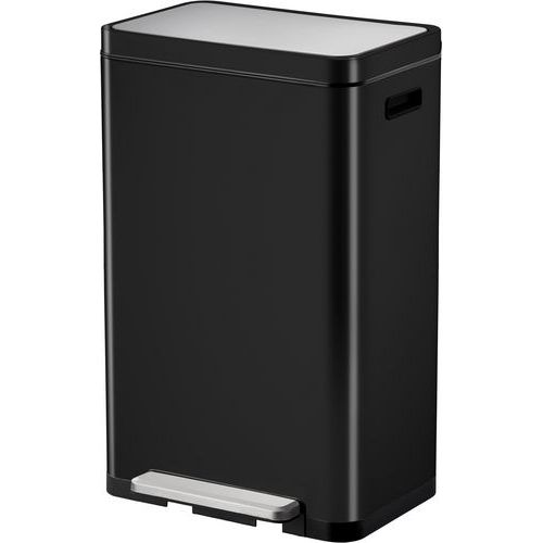 Stilfuld rektangulær pedalspand med ekstra bred pedal, indvendig plastikspand, blødt lukkende låg og stay-open funktion.