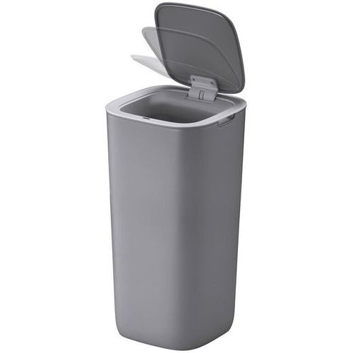 En trendy firkantet plastaffaldsspand med en sensor og touch-kontaktpanel til at åbne låget med en enkel bevægelse.