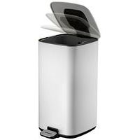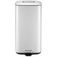 Firkantet affaldsspand med pedal, lavet af børstet rustfrit stål med anti-fingeraftryk finish.
