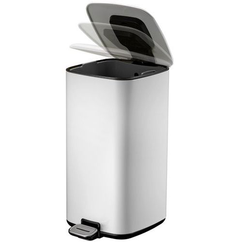 Affaldsbeholderen er udstyret med en inderspand af plast, et håndtag på bagsiden og et låg med lydløs lukning og har et unikt design.