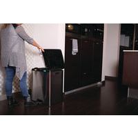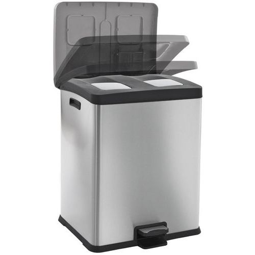 Rektangulær pedalspand i rustfrit stål med 2 indvendige plastbeholdere.