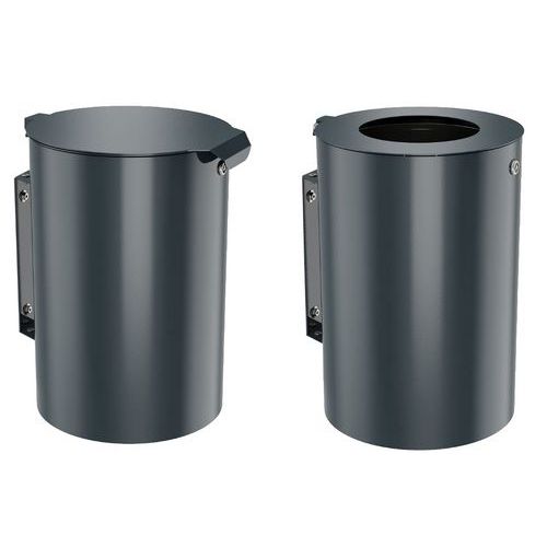- Papirkurv RW2 er en solid 30‑liters papirkurv til vægmontering, velegnet til både indendørs og udendørs brug.