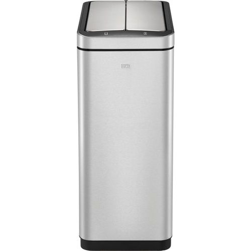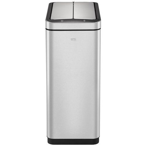 Stilfuld affaldsspand til affaldssortering af børstet rustfrit stål med fingeraftrykssikker belægning og to indvendige plastbeholdere (2x 20 liter).