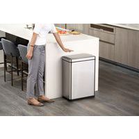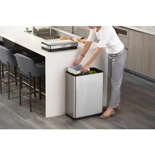 Stilfuld affaldsspand til affaldssortering af børstet rustfrit stål med fingeraftrykssikker belægning og to indvendige plastbeholdere (2x 20 liter).