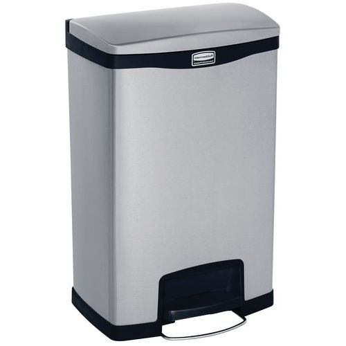 | Varenavn | Papirkurv Slank Jim Step On Front Step Inox 50 L Rubbermaid, Volumen: 50 L, Åbning: Med pedal |