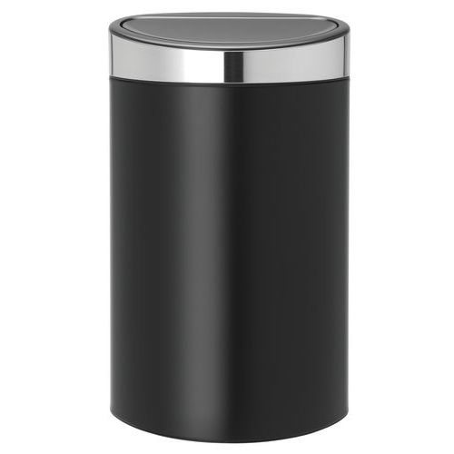 En affaldsspand med stort volumen, der kan stilles op ad en væg på grund af sin form.