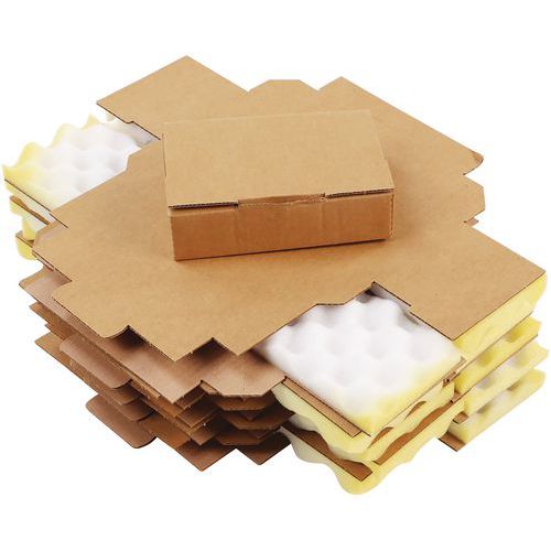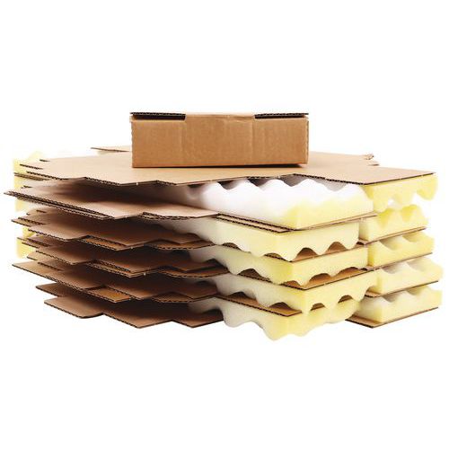 Enkel og hurtig lukning med klap. Fragtkasse med indvendig og udvendig beskyttelse. Skumplast som indvendigt materiale uden freoner (CFC og HCFC).