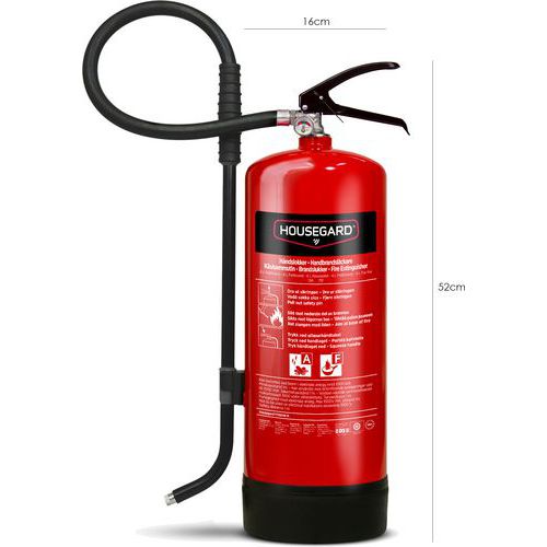 | Varenavn | PFAS-fri fedtbrandslukker, 6 liter, Rød, Totalvægt: 9.5 kg, Model: Skum, Rækkevidde: 2 m, Slukker Ø: 160 mm |