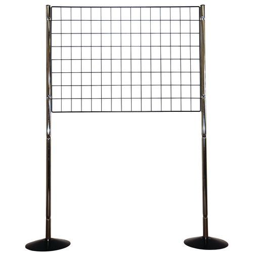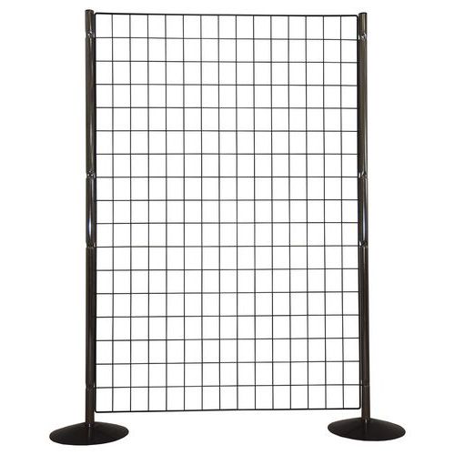 Modulær skillevæg kan laves efter dine behov takket være de forskellige paneler med dobbeltside eller gitter. Forkromet stålstolpe og rund lakeret stålbase giver bedre stabilitet. Yderligere oplysninger: Gitter: lavet af 4 mm ståltråd, 8 mm omkreds. Farve: lakeret sort epoxy (RAL 9005). 6 svejsede kroge til gitteret på 180 x 120 cm og 4 kroge til gitteret på 85 x 120 cm. Korkskillevæg: 10 mm isoleringsplade og 1 mm tyk korkplade på begge sider. Anodiseret aluminiumsramme og hjørner i sprøjtestøbt polystyren og hjørnedæksler i polyamid. Hvidlakeret skillevæg: 10 mm pap i bikubedesign og 0,4 mm hvidlakeret metal på begge sider. Anodiseret aluminiumsramme og hjørner i zamak og hjørnedæksler i polyamid. Stolpe: Forkromet stål med en diameter på 40 mm med 4 niveauer à 4 indhak. Bund i lakeret sort epoxy (RAL 9005) skruet fast på stolpen.