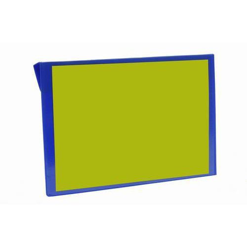 - Forsiden er af gennemsigtig plast, som beskytter etiketten mod snavs og slitage.