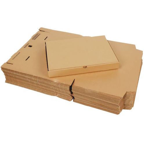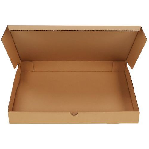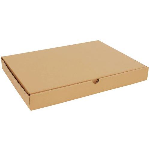 Stærk forsendelseskasse lavet af Havana-farvet kraftpap. Design specielt tilpasset flade genstande.