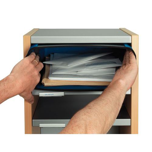 Transporttaske med kile til udvidelse på forsiden til sortering.