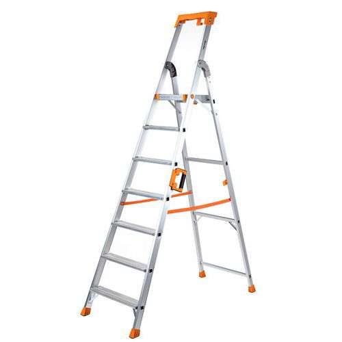 Professionel trappestige i aluminium, Adgangshøjde: 3.6 m, Platform, højde: 1.606 m, Antall trinn: 7 Professionel trappestige i aluminium, Adgangshøjde: 3.6 m, Platform, højde: 1.606 m, Antall trinn: 7