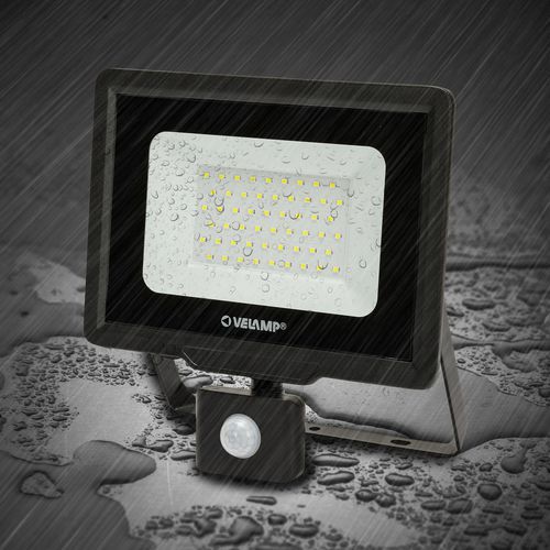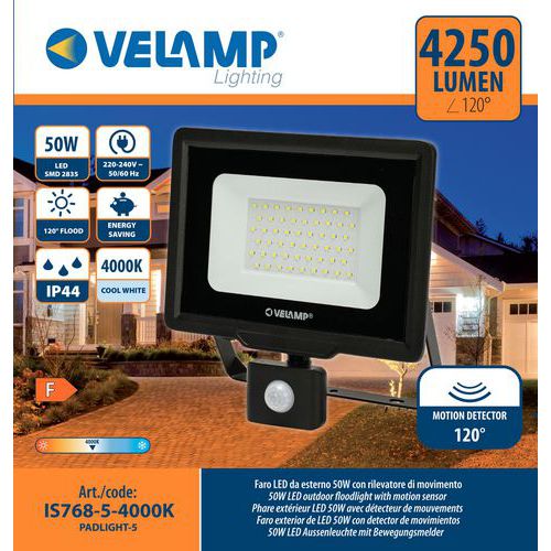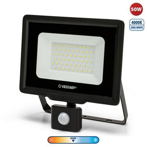 Projektør LED 50W med bevægelsessensor, Lysstrøm: 4250 lm, Effekt: 50 W, IP-beskyttelse: IP 65, Farve: Sort