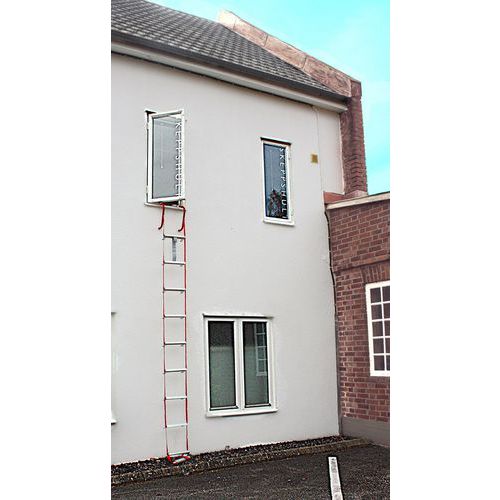 Rebstige Nødudgang er en let og fleksibel stige til for eksempel evakuering af bygning og kan klare vægtykkelser på op til 300 mm.