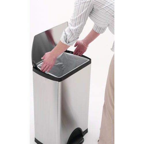 - Designerpedalspand, rektangulær model. Udstyret med en eller to indvendige plastspande.