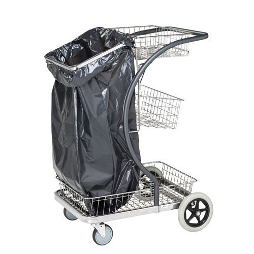 - Rengøringsvogn fra C-line-serien. Vognen er meget let at manøvrere takket være det midtermonterede håndtag. Den har tre trådhylder og en sækkeholder med klemmering. Vognen er nem at køre, er forsynet med to drejelige hjul og to faste hjul og kan klare en maksimumbelastning på 100 kg. Hjul, Ø: 2 x 200 + 2 x 100 mm, 2 faste og 2 drejelige. Leveres umonteret.