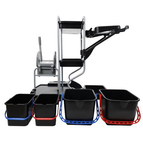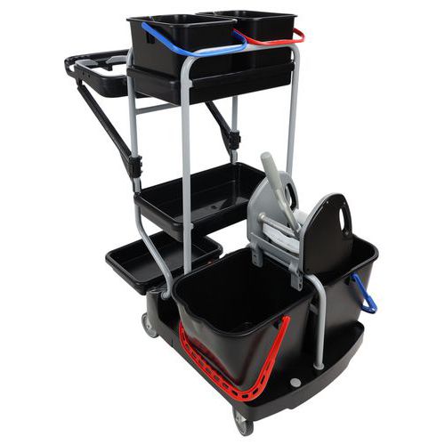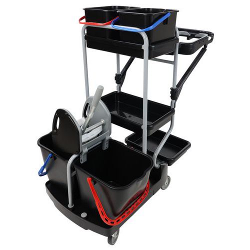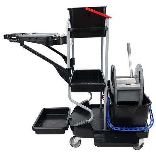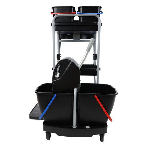 | Varenavn | Rengøringsvogn med poseholder , Volumen: 15 L, Farve: Sort/grå, Højde: 118 cm, Bredde: 76 cm, Længder: 115 cm |