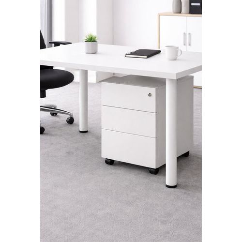 Renoveret mobil piedestal 3 skuffer hvid, Materiale: Melamin, Totalhøjde: 58 cm, Antal skuffer: 3