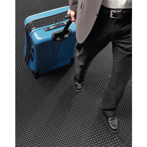 Sig farvel til snavs, støv og skidt – ringgummimåtte til offentlige områder, som kan placeres i en nedsænkning eller direkte på jorden. Måtten er fremstillet af en ekstra holdbar gummiblanding, som tåler intensiv fodtrafik, er nem at rengøre og stort set vejrbestandig. Fremragende dræning takket være de hævede knopper på undersiden, som lader vandet løbe frit væk. Måtter i Oct-O-Flex-serien har en glat overflade med små huller, opfylder EU-krav til offentlige indgange og er særligt designet til miljøer, hvor der bruges kørestole, tasker, stokke eller krykker. Som tilbehør fås forbindelseselementer til at sammenkoble flere måtter samt runde minibørster til Oct-O-Mat-serien (med store huller).