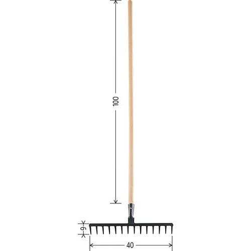 | Varenavn | Rive 14 tænder, Bredde: 40 cm, Håndtagslængde: 100 cm, Antal tænder: 14, Produktvægt: 1.3 kg |