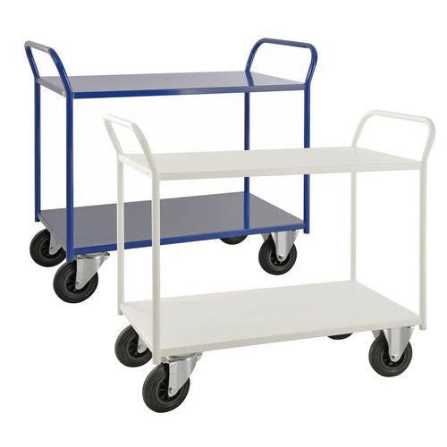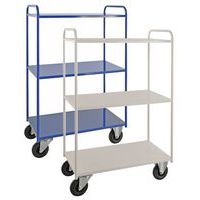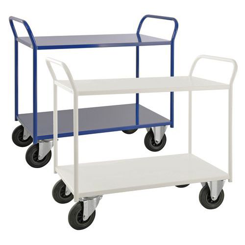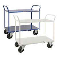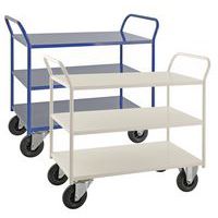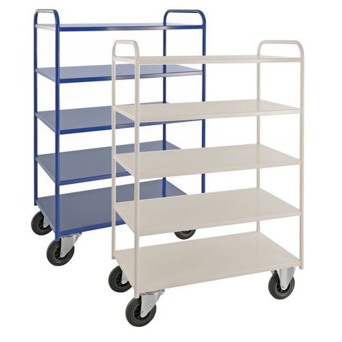 Helsvejsede rulleborde i den tunge serie – maksimal kapacitet på 400 kg fordelt på alle hylder. Pulverlakeret i hvid eller blå. Rullebordene fås i to forskellige bredder, 450 og 550 mm. Vælg mellem 2, 3 eller 5 hylder samt høj eller lav model. Fire hjul, to faste og to drejehjul.
