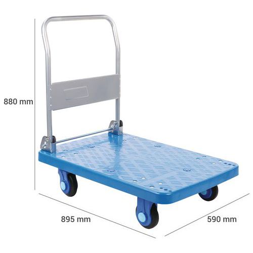 | Varenavn | Rullevogn af plast, fældbart håndtag 300 kg, Kapacitet: 300 kg, Totalhøjde: 880 mm, Totalbredde: 590 mm |