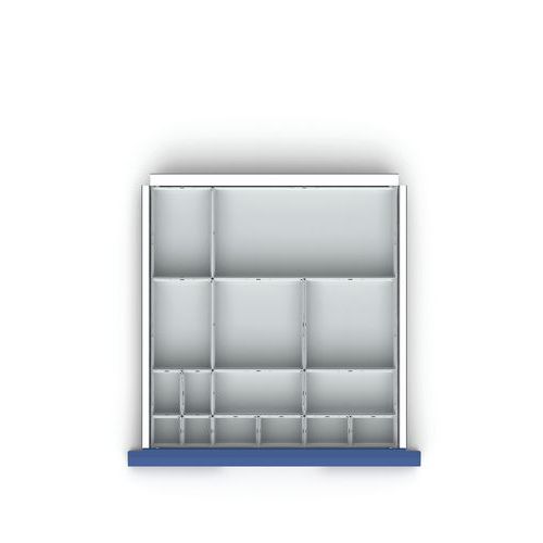 | Varenavn | Rumdeler til skuffer H 100x525 – Bott, Højde: 100 mm, Bredde: 525 mm, Dybde: 550 mm, Antal rum: 13 |