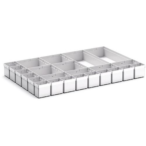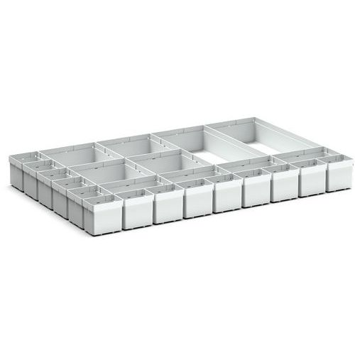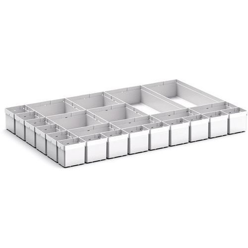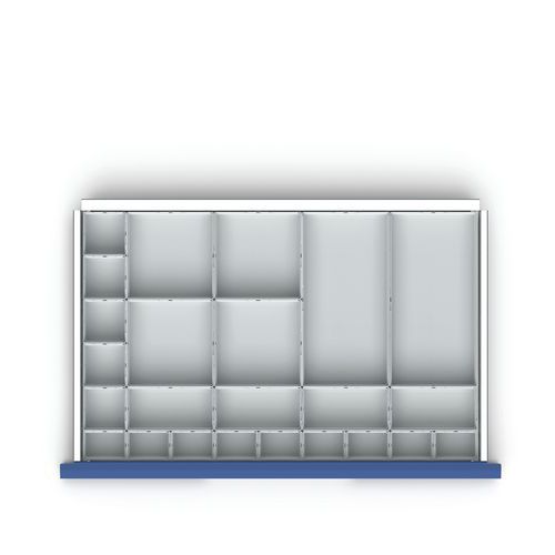 | Varenavn | Rumdeler til skuffer H 100x800 – Bott, Højde: 100 mm, Bredde: 800 mm, Dybde: 550 mm, Antal rum: 16 |